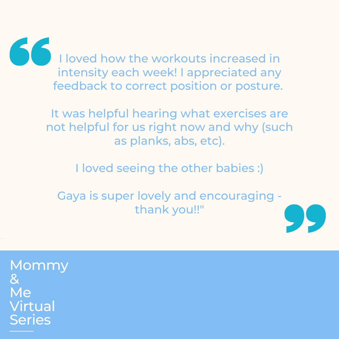 Yes there will be recordings uploaded to my site after each class! So don’t worry if you need to skip a session, join in late, or your baby is fussing. For privacy, recordings will only show myself demonstrating the exercises and not the attendees.