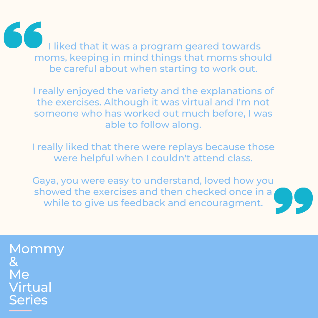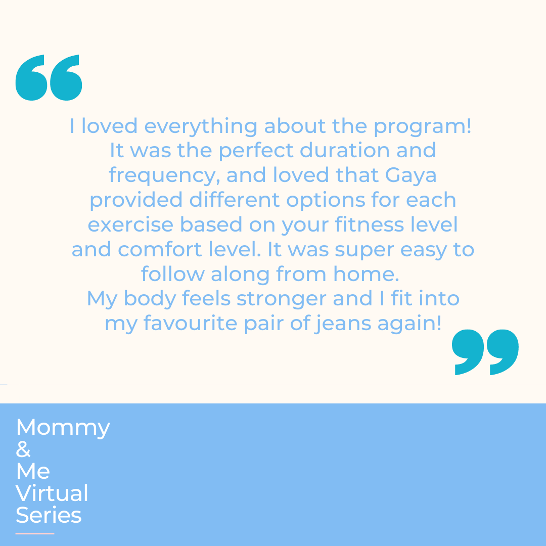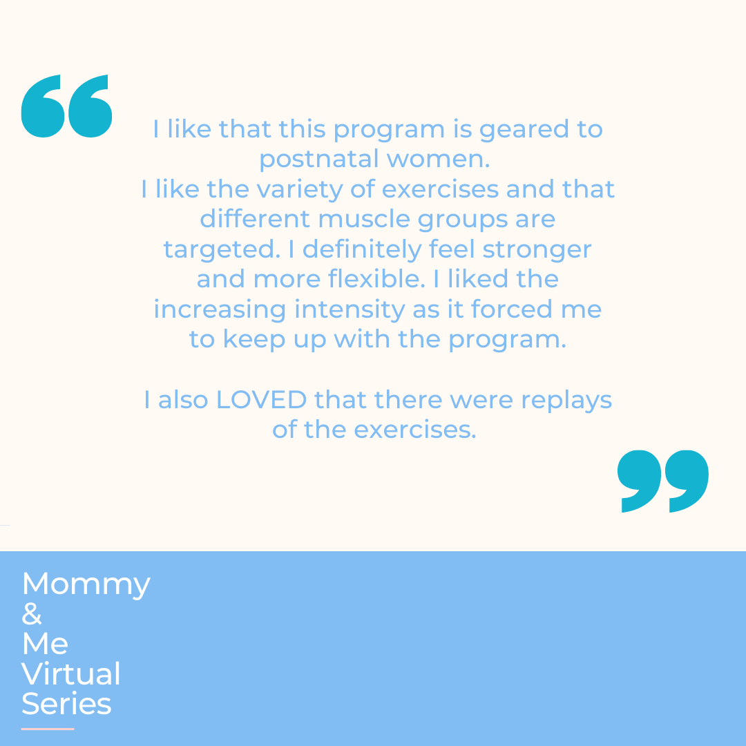 Of course! As this program runs at noon and is virtual, it’s a perfect lunchtime workout for moms who are back at work (or working from home). There are many moms who join just for the workout!